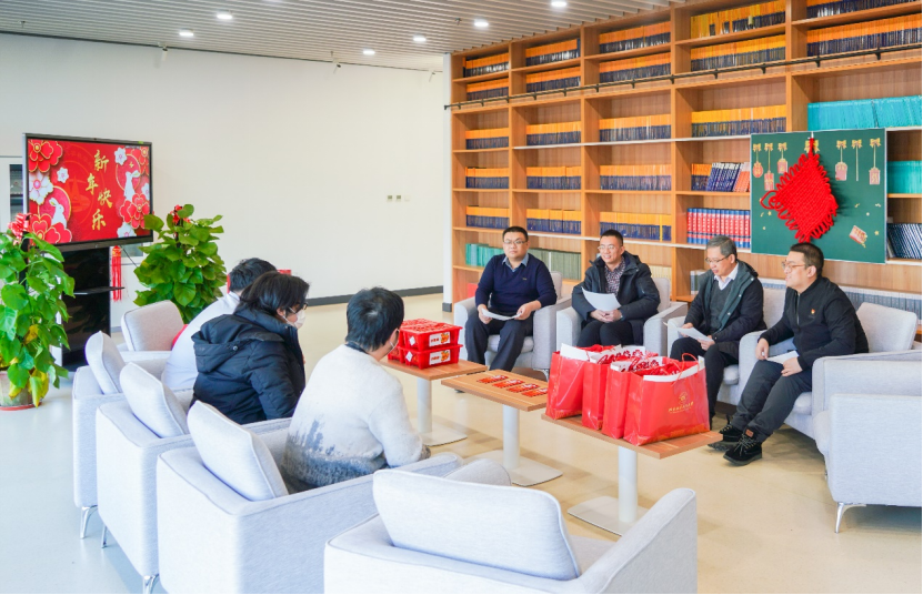 玉兔迎春,岁华煦暖,1月17日上午,太阳集团122cc于沙河主楼E303开展寒假留校员工新春慰问活动。公司经理韩德仁、党委书记袁星、党委副书记曾煜、团委书记王铁成和留校员工在交流在校生活情况的同时为他们送上新年问候与祝福。