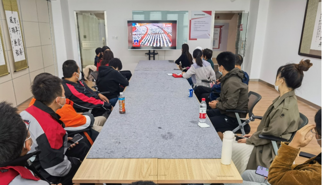 1016日,都市芳园社区党支部组织辖区内各行业从业人员与员工党支部在东小口镇党群服务中心共同观看党的二十大开幕会。