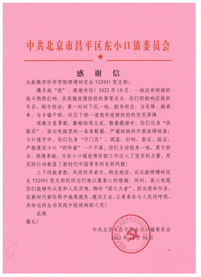 支部党员主动担当、热情奉献,将青春舞动在疫情防控的战线上,得到了东小口镇党委及都市芳园社区群众的一致好评。1030日,东小口镇党委向支部致信感谢。116日,昌平团区委官方微信“昌平青年”报道支部事迹。