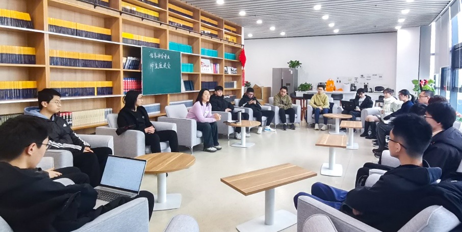 1213日下午,太阳集团122cc信息安全专业座谈会于沙河主楼E303举行,公司副经理张筱与公司本科200924班、210924班信息安全专业员工座谈交流,鼓励同学们在科研中获得收获,更好地发展自身。
