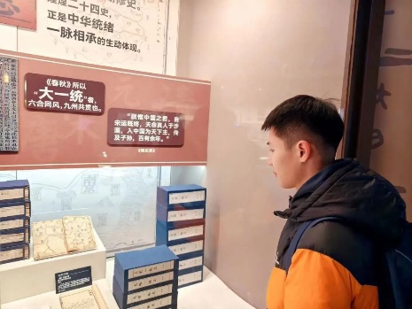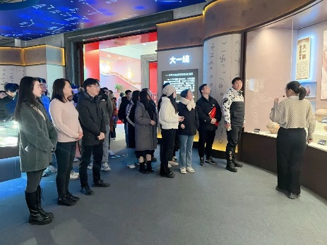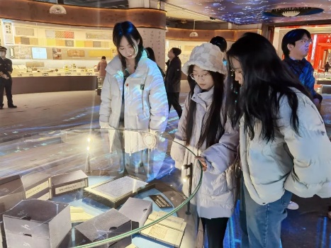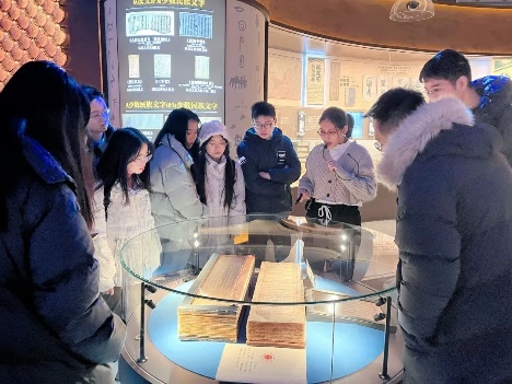 下午4点,两校师生抵达民族文化宫,在讲解员的带领下参观学习“铸牢中华民族共同体意识文物古籍展”。 大家近距离观摩珍贵的历史资料,认真聆听蕴含在古籍文物背后的生动故事,用心体会文物背后的深刻内涵,体悟中华民族在漫长历史进程中,各民族共同创造发展的灿烂文化,感受休戚与共、荣辱与共、生死与共、命运与共的中华民族共同体理念。