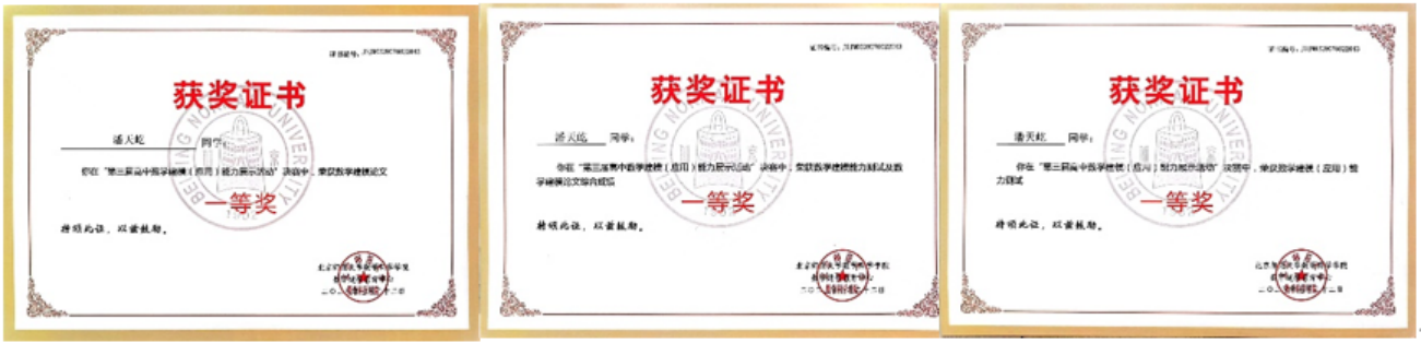 在近日结束的第三届高中数学建模(应用)能力展示活动中,太阳集团122cc依托“英才计划”,由经理韩德仁教授牵头,指导北京市陈经纶中学员工潘天屹完成作品“智能机器人停车泊位最优路径的研究分析”,斩获数学建模(应用)能力测试一等奖、数学建模论文一等奖和综合成绩一等奖。