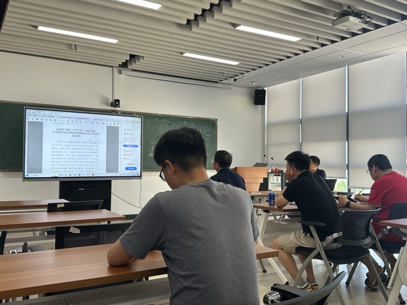首先,谢家新老师带领大家集体学习了习近平总书记在中共中央政治局第五次集体学习时的重要讲话精神,强调了建设教育强国的意义,并倡导身在教育和科研一线的党员同志们,做好本职工作,立德树人,努力奋进,为实现教育强国目标贡献自己的力量。随后,谢家新老师以浙江“千万工程”为例,从基本情况、主要做法、经验启示三个方面带领支部党员深刻感悟了党的创新理论及其真理力量和实践伟力,师生党员围绕该案例进行了学习研讨。