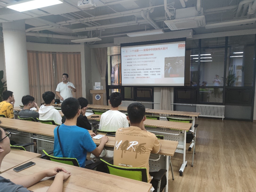 为深入学习贯彻习近平总书记“七一”重要讲话精神,引导广大新生感悟初心使命,奋斗美好未来,9月29日下午,数学公司开展全体2021级强基计划新生集体学习习近平总书记在庆祝中国共产党成立100周年大会上的重要讲话精神主题党课。主题党课于员工社区共享空间8-B110开展,数学公司党委副书记曾煜担任主讲人,新生辅导员周国栋主持。