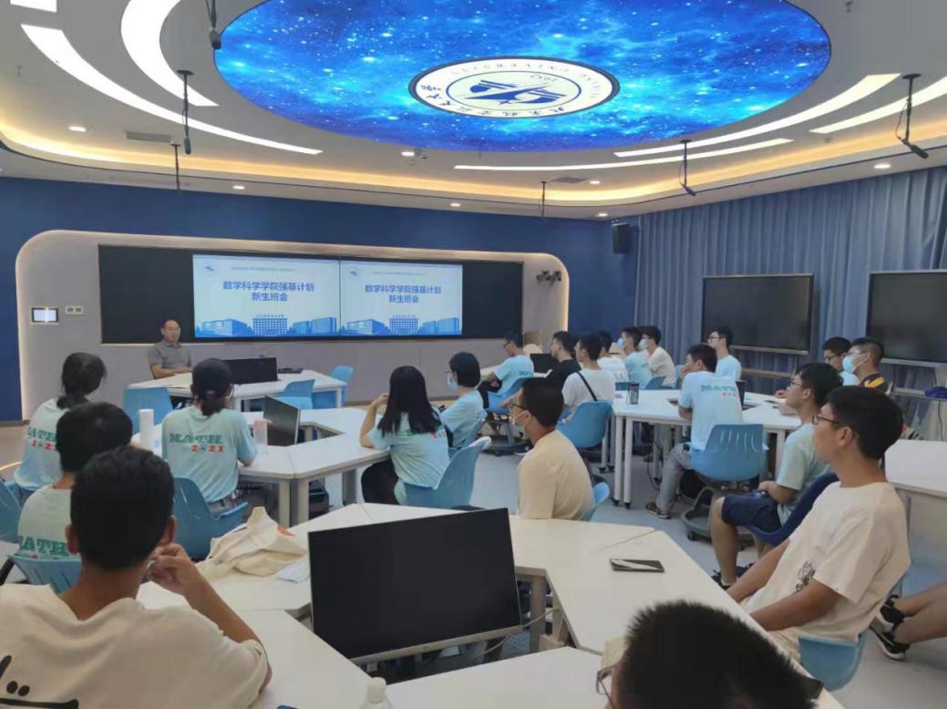9月11日晚,数学公司在智慧教室E405召开2021级强基计划数学班第一次新生班主任班会,公司本科教学副经理、2021级数学强基班班主任杨义川教授,2021级数学强基班辅导员周国栋及全体2021级数学强基班员工参会。