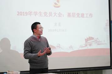 然后,丁丁副书记做2019年数学公司员工党建工作部署,首先分析了高校员工党建工作背景及目前面临的严峻形势,而后指出并部署了2019年公司员工党建工作的各项工作要点,最后希望全体员工党员在十周年院庆、沙河校区搬迁等公司重要工作中发挥党员先锋模范带头作用,积极推动公司工作的开展。