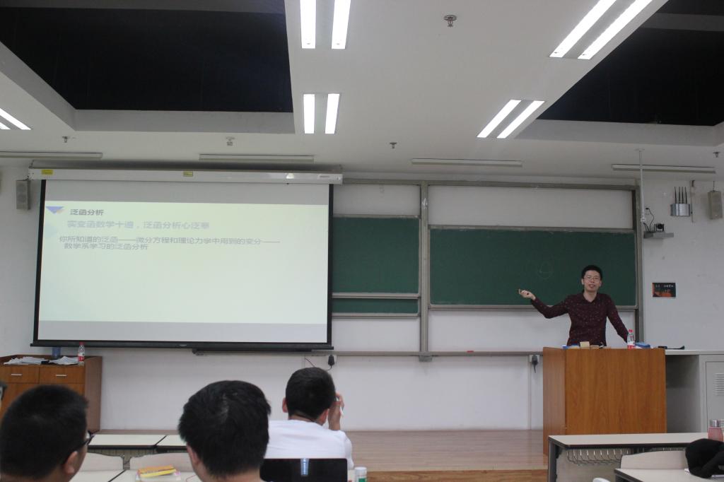 4月22日下午,由北航数学公司2013级博士生闫树学长为数学公司2015、2016级本科生带来了一场主题为“学在九系”的别开生面的讲座。现场座无虚席,气氛热烈,闫树学长与同学们亲切交流,为同学们解决了许多学习、科研、生活上的问题。闫树学长师从郑志明教授,研究生阶段共计发表第一作者论文5篇(包含3篇SCI检索文章)。曾任多届工科数学分析习题课助教及数海领航首席顾问。曾获得北航“研究生十佳”(博士)、国家奖学金(博士)、国家奖学金(硕士)等荣誉。2016年博士毕业后就职于中国信息通信研究院任大数据科研工程师。