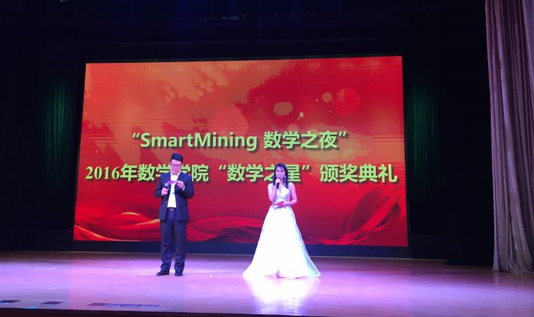 12月29日,“SmartMining 数学之夜”2016年数学公司数学之星颁奖典礼在沙河校区咏曼剧场举行。广州思迈特软件有限公司副总裁徐晶员工,数学公司清华大学周培源应用数学研究中心副研究员雷锦誌员工,北京航天自动控制研究所人力资源处副处长,研究生部主任卓继亮员工,中国信息化协同创新专委会秘书长王金祥员工、金银岛(北京)网络科技股份有限公司副总裁杜彦江员工,北京智明星通科技有限公司发行总监徐诚员工,公司教育基金会秘书长何沙老师,员工会副秘书长、员工办主任白明老师以及数学公司师生三百余人参加了此次盛典。