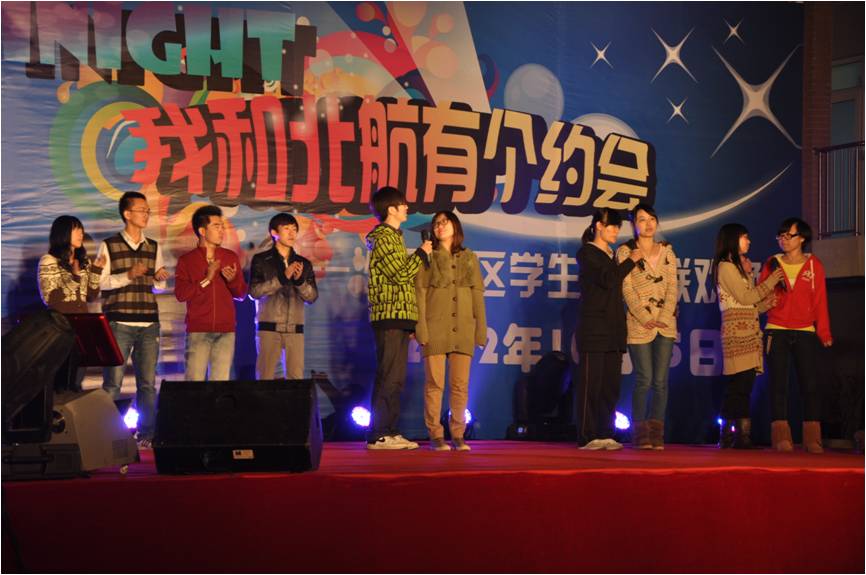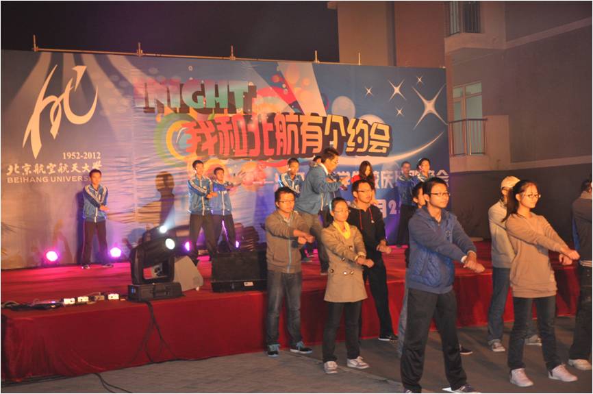 10月23日至27日,为了迎接北航60周年校庆, “I Love Beihang”校庆嘉年华系列狂欢活动在公司路和沙河两个校区闪亮登场。我公司与人文社会科学公司共同承办了由校团委主办的“iNight——我和北航有个约会”沙河校区员工校庆联欢晚会,整个晚会活动由两个公司分团委共同策划、组织,其中公司辅导员张文浩担任晚会执行总导演,辅导员李轩昂担任晚会节目的负责人,公司员工会承担了从晚会筹办、节目预审、晚会当天的组织工作、后勤工作等的大部分艰巨任务。