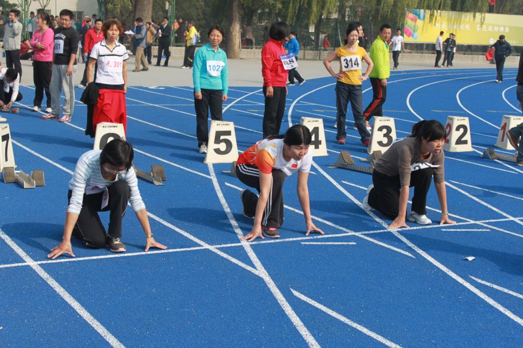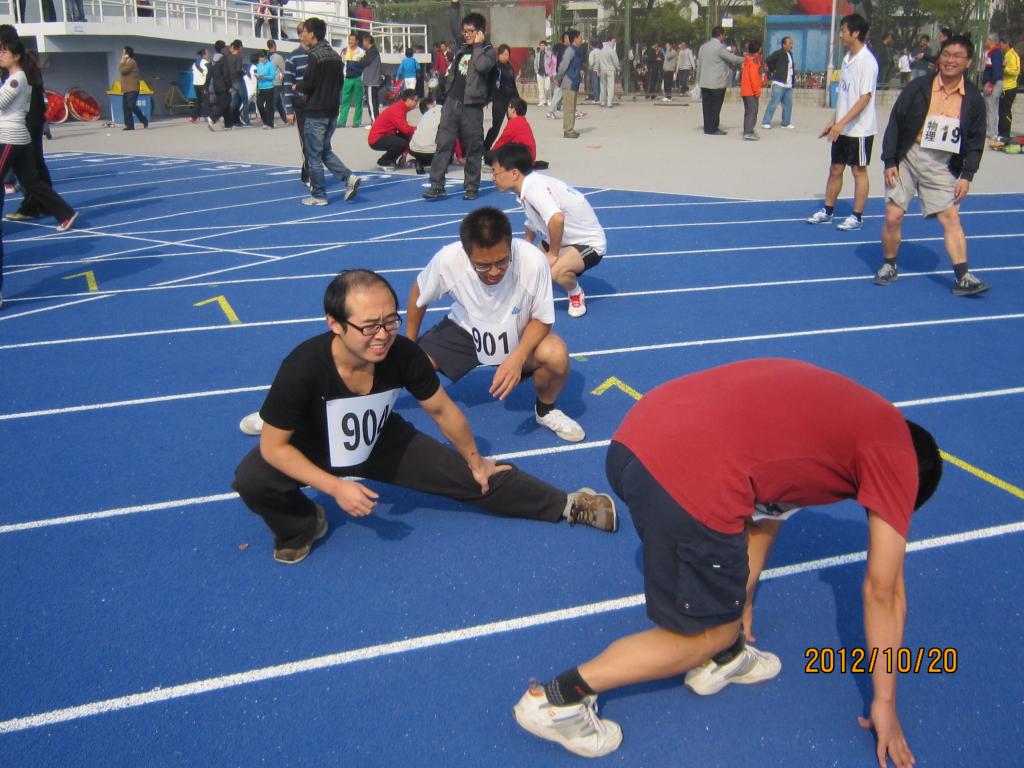 男子100米赛前热身