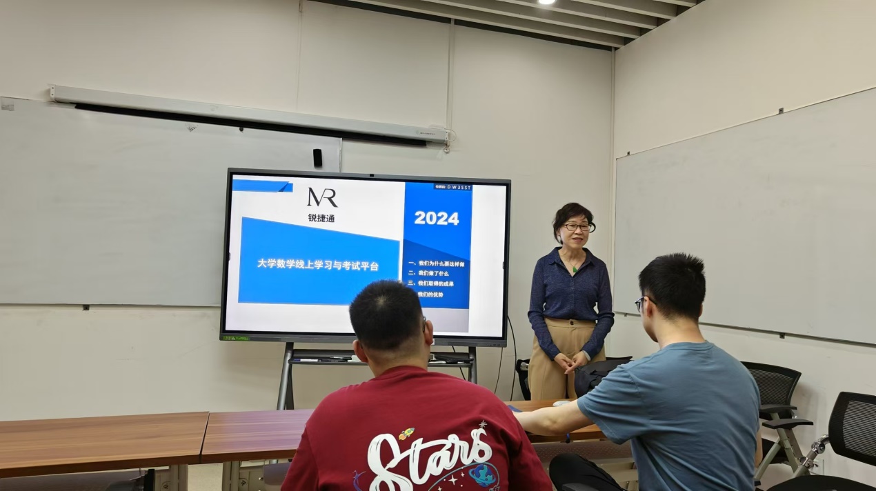 马锐教授为参会师生介绍了他们自主开发的大学数学线上学习与考试平台“锐捷通”,包括其内容、特点、优势以及目前已经取得的成果。报告过程中,参会师生从教学中遇到的问题、对线上平台应用的展望等方面与马锐教授展开了热烈讨论,为进一步提高教学效果提供了新思路。