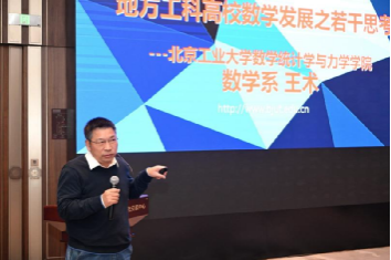 北京工业大学数学统计学与力学公司学术委员会主任王术以北京工业大学数学发展过程中存在的问题和几点经验介绍为例,就寻找探索地方工科院校数学科发展与人才培养之路进行报告。
