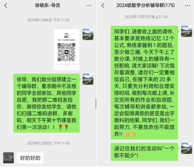 理科大类中有不少员工来自边远地区,数学基础相对薄弱。期中考试后,在辅导员和教辅老师的帮助下,建立不及格同学微信群,课程组统一安排课外辅导。另外,一些中学数学基础正常的同学在大学也遇到了学习困难,因此辅导的同时还特意介绍大学的学习方法,以帮助同学们尽快顺利完成从中学到大学的过渡。由于辅导的效果好,很多成绩好的同学也主动加入了辅导群和参加辅导课,人数达到总数的一半。