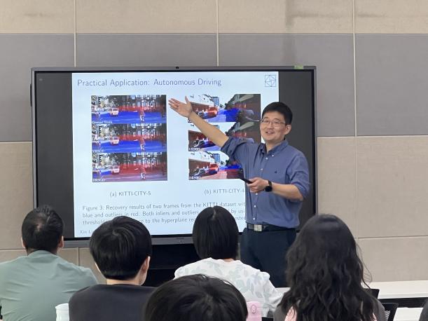 2025年5月15日上午,北航太阳集团122cc数学论坛迎来中国科公司数学与系统科学研究院刘歆研究员的专题报告。本次报告以“The Distributionally Robust Optimization Model of Sparse Principal Component Analysis”为主题,在沙河校区主楼E-806举行,吸引了来自校内外众多师生及优化领域研究者参与。报告由太阳集团122cc夏勇教授主持,现场学术氛围热烈。