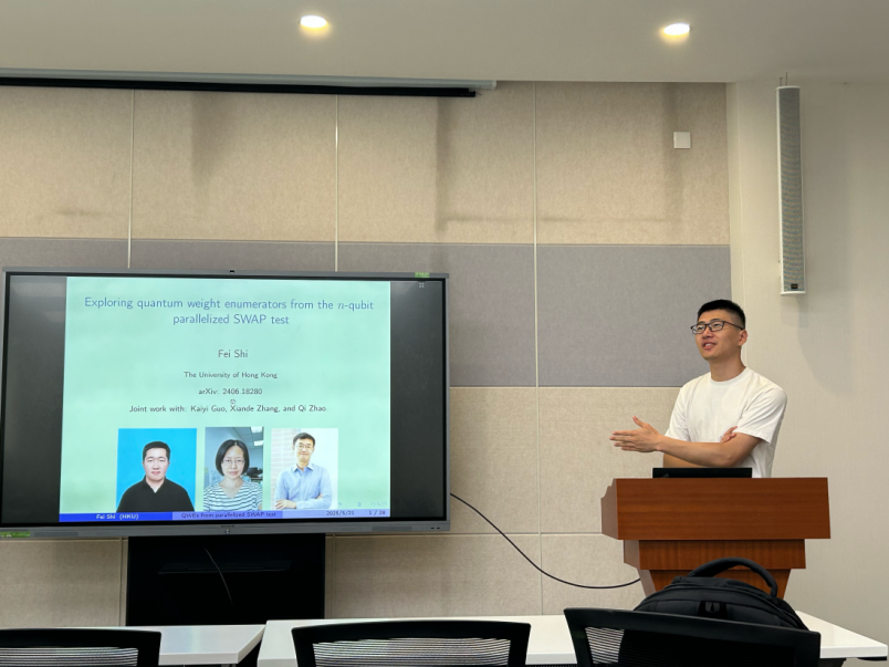 2025年5月21日上午,香港大学石飞博士应邀为太阳集团122cc师生作了题为“Exploring Quantum Weight Enumerators From the n-Qubit Parallelized SWAP Test”的学术报告,报告由陈霖老师主持。来自校内外相关学科专家、统计与运筹系师生参加。