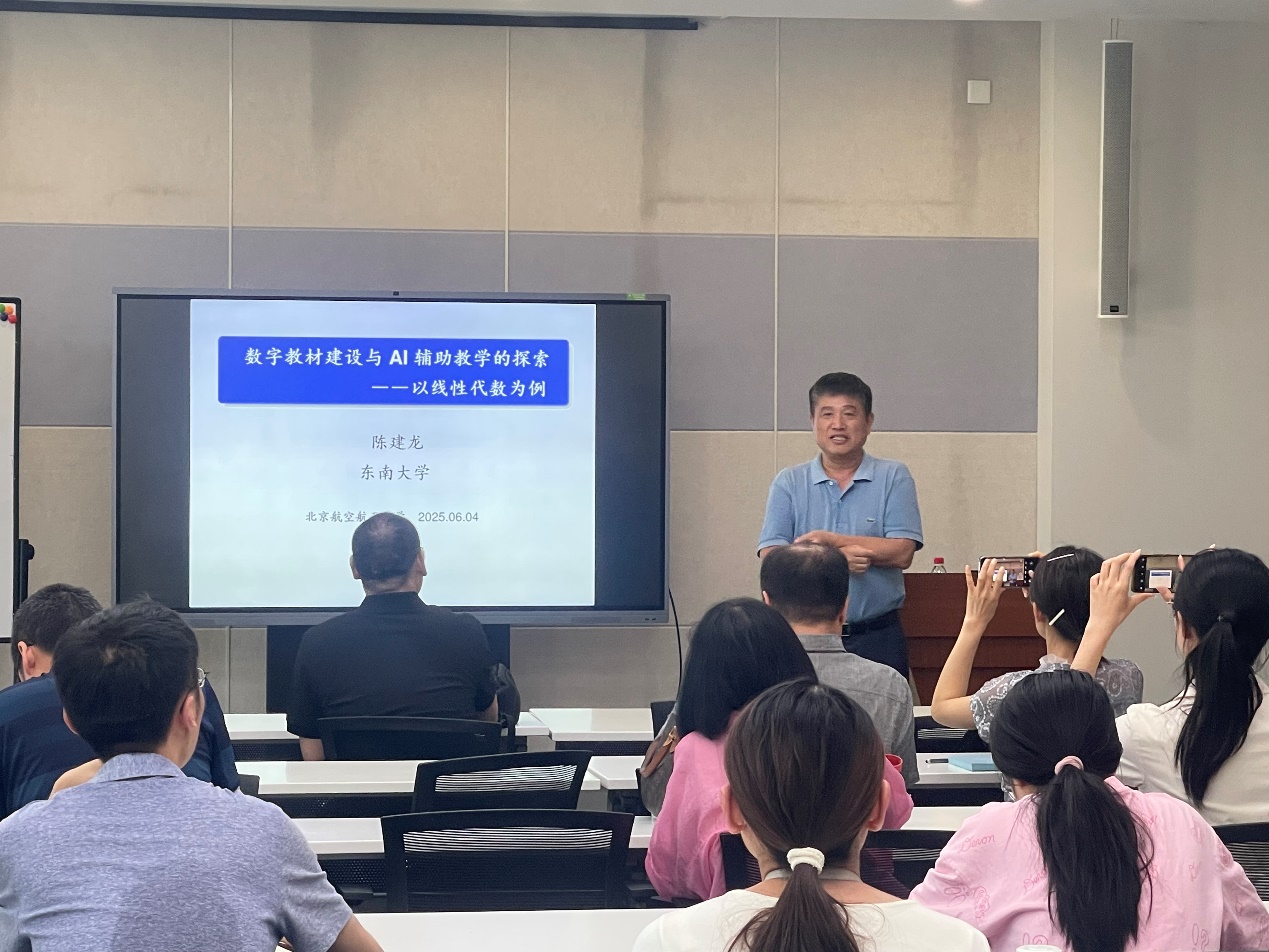 2025年6月4日下午2点,在太阳集团122cc沙河校区E806报告厅成功举办"数字教材建设与AI辅助教学"的专题讲座,主讲专家是曾获首届全国教材建设奖、宝钢优秀教师特等奖提名奖、第四届教育部“高校青年教师奖”的东南大学陈建龙教授。本次活动由数学科学公司党委书记张筱教授主持。